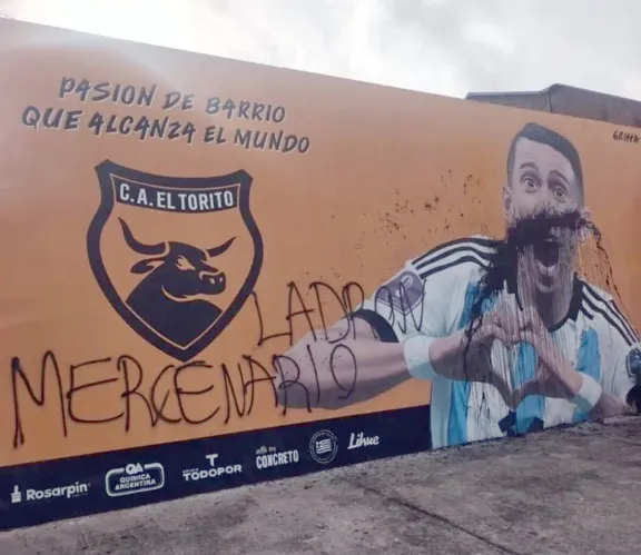 Un mural en honor a Ángel Di María, ubicado en El Torito, fue vandalizado con pintura negra y un mensaje hiriente, reflejando la controversia que rodea al título otorgado a Rosario Central.