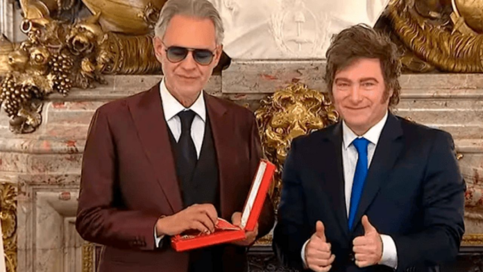 En una tarde que combinó emociones y un toque de espectáculo, el tenor italiano Andrea Bocelli fue homenajeado por el presidente Javier Milei en el emblemático Salón Blanco de la Casa Rosada.