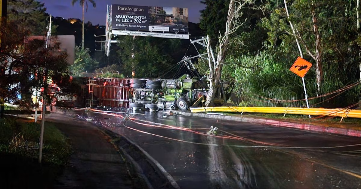 El incidente ocurrió en la vía Las Palmas, específicamente en la Loma de Los Balsos, alrededor de las 4:30 a. m. Las autoridades viales informaron que el tractocamión, que transportaba una carga de jabón, perdió el control debido a una aparente falla en los frenos.