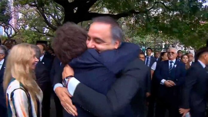InicioPoliticaJavier Milei y Manuel Adorni: Un Abrazo Solidario en el Acto por...