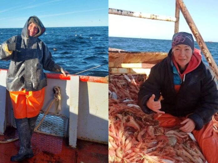 Ahora, Paola trabaja en condiciones que requieren mucho sacrificio físico y emocional. En Rawson, su rutina comienza antes del amanecer: “Salimos con la marea, acomodamos redes y sacamos los langostinos”, detalla.