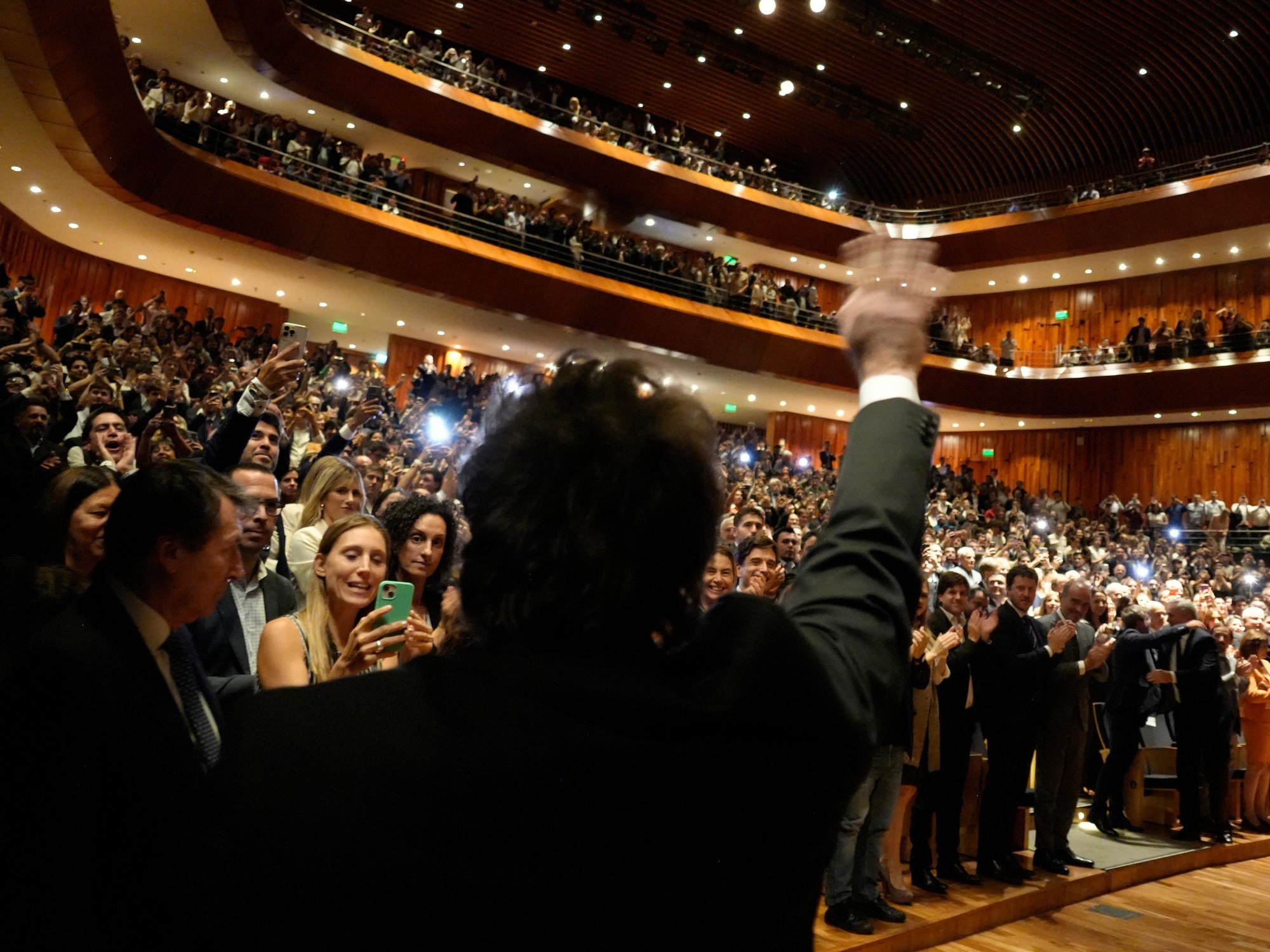 El mandatario no perdió tiempo y se mostró entusiasta al saludar a figuras cercanas como su hermana Karina y el asesor presidencial Santiago Caputo. Su presencia en el estrado estaba marcada por un ambiente de camaradería, aunque Adorni no estuvo presente durante la conferencia.