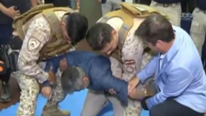Rodeado de dos agentes, Quinteros no dudó en someterse a las descargas del dispositivo, admitiendo la importancia de que quien autoriza la compra lo pruebe en carne propia. “Como no tengo al gobernador aquí, lo haré yo”, expresó, antes de recibir la descarga que lo llevó a caer de rodillas al suelo, evidenciando la efectividad del equipo.