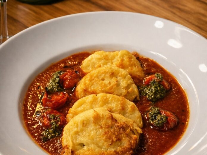 Los ñoquis de semolín, gratinados a la perfección, son el plato ideal para quienes buscan confort en cada bocado. A esto se suma un exquisito pollo de campo relleno, jugoso y acompañado de puré de boniato, que cerrará la experiencia con una tarta vasca adornada con quinotos en almíbar.