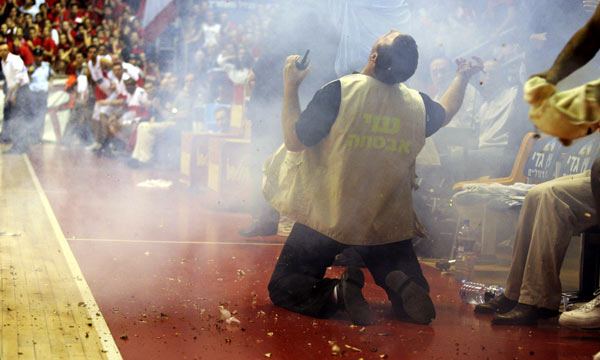 un partido de básquet en Israel cuando uno de los espectadores