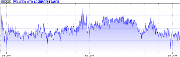 evolución del eCPM AdSense en diversos países de la Zona Euro y a