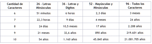 que prueban millones de posibles claves, en tiempos muy breves,