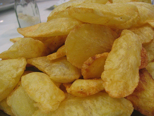 con unas papas arrugadas, frías. Impresentables.
