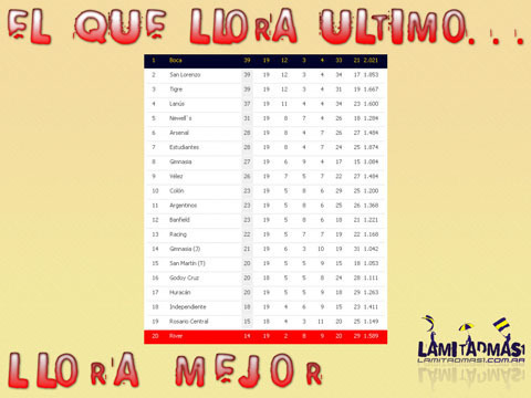 respecto a la posición de River en la tabla.