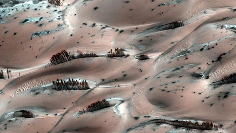 muestran aparentes árboles o pinos sobre la superficie de Marte