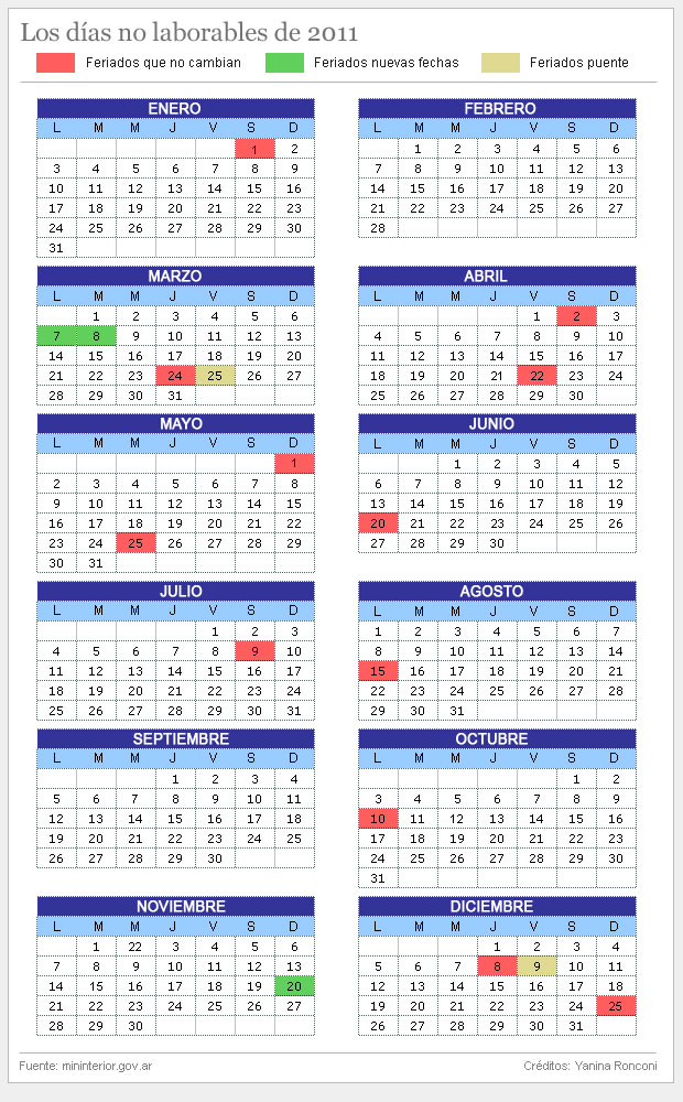 Así quedarían los feriados en 2011