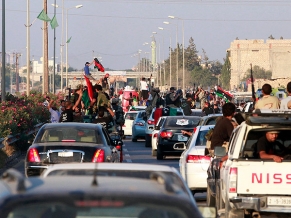 Previamente, los rebeldes, ondeando banderas opositoras y