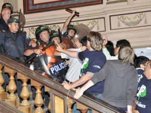 enfrentarse con policías en la reasunción del gobernador