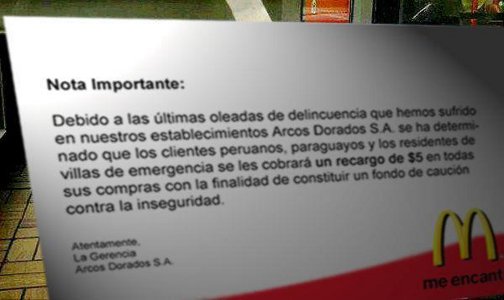 El texto discriminador y xenófobo decía: “Nota importante: Debido a