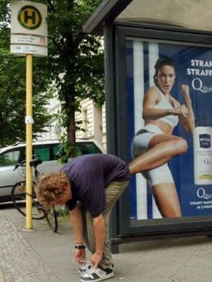 anuncio publicitario supuestamente pateando a una persona. Pero, ¿en