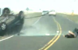 improvisado camarógrafo, se baja de su automovil para pedir auxilio