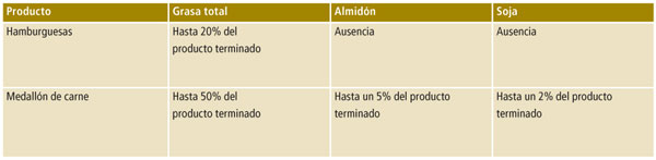 de grasa no puede exceder el 20%. En cambio, los medallones de carne