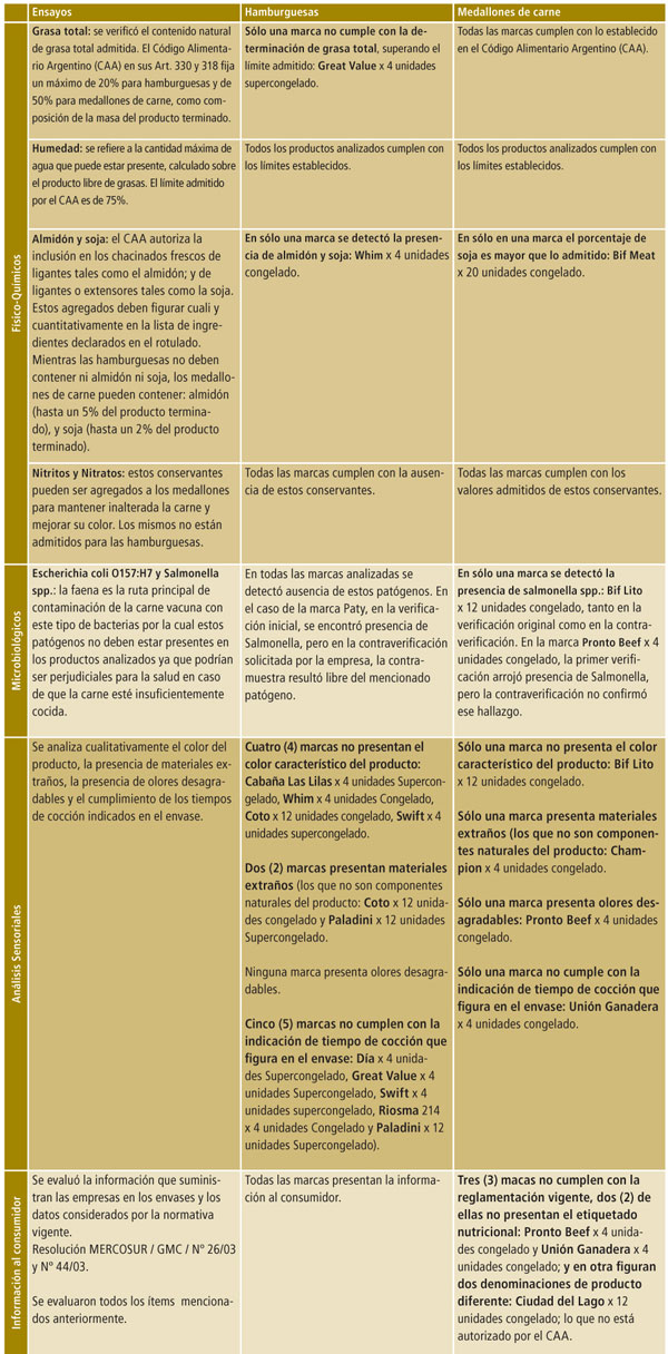 muestrearon y analizaron 19 marcas comerciales: 10 de hamburguesas y
