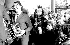 ayer, con el bandoneonazo en las escaleras del Colón. Para