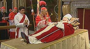 cadáver de Karol Wojtyla -colocado en un catafalco- estaba vestido