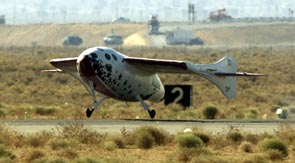nave SpaceShipOne aterrizó exitosamente esta mediodía en Mojave,