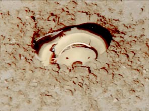 incrustándose en la tierra, ante la mirada atónita de los técnicos