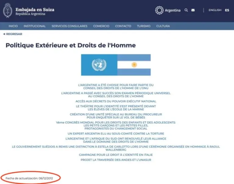 El canciller destacó que el sitio web de la embajada mostraba información obsoleta, con secciones que no se habían actualizado desde diciembre de 2012. Este reclamo fue particularmente relevante dado que Suiza enfrentaba un devastador incendio que había dejado numerosas víctimas, y el portal no contenía datos que reflejaran la coyuntura actual.
