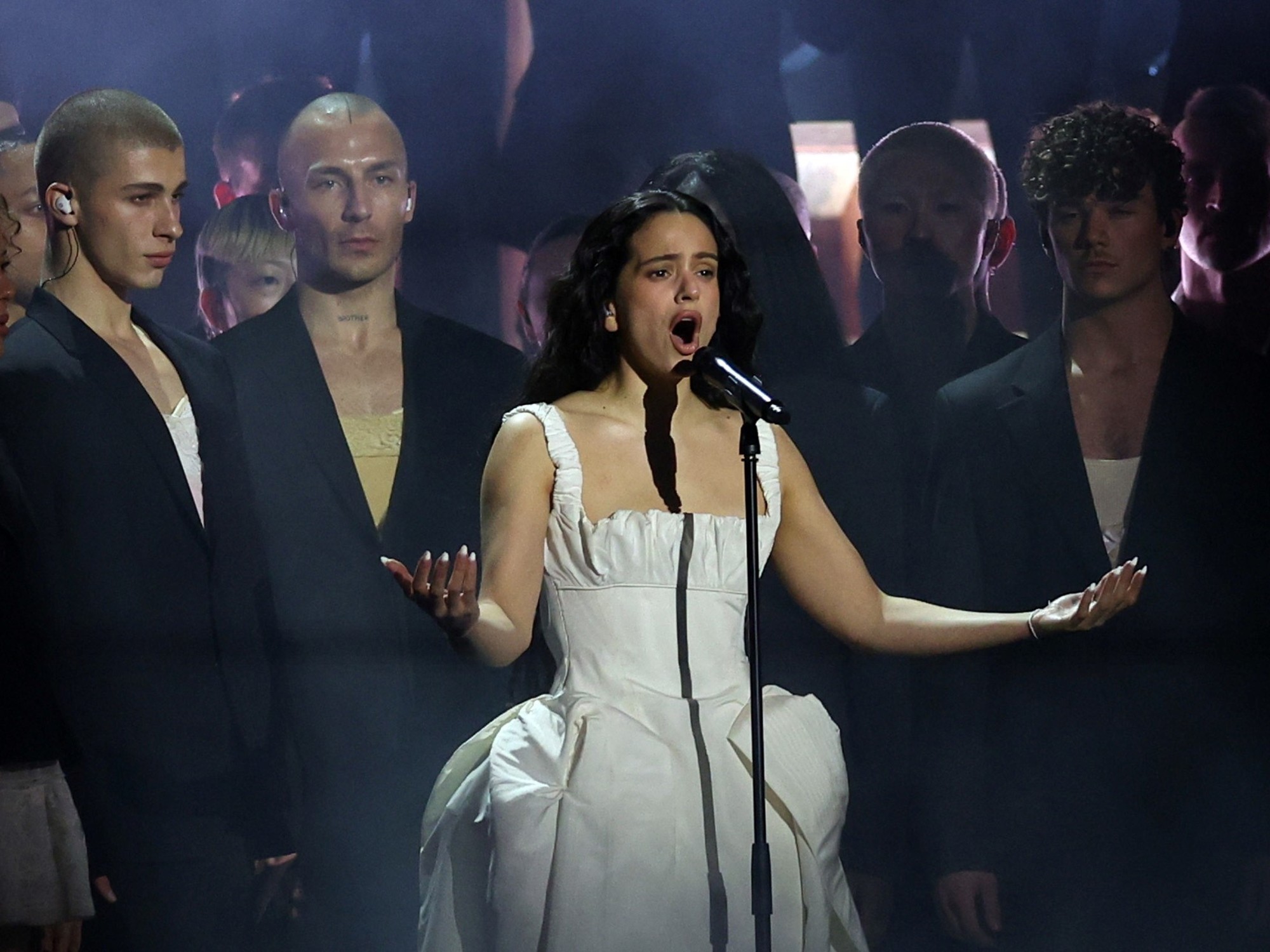 La noche tuvo otras sorpresas, incluyendo la aparición inesperada de Björk, quien se unió a Rosalía en el escenario, intensificando la atmósfera experimental de la performance.