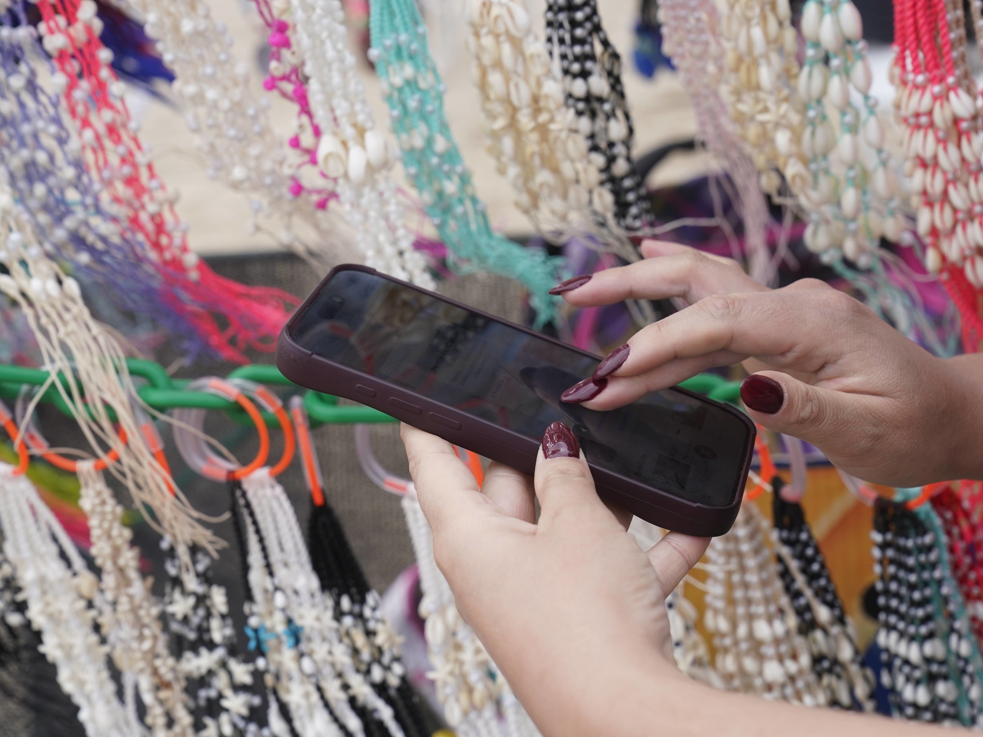 Mientras el sol brilla intensamente sobre la arena, el sonido que resuena no es el de una billetera, sino el de un celular notificando el pago de una transferencia. A la orilla del mar, una vendedora sonríe al confirmar el abono y entregarle la compra al cliente.