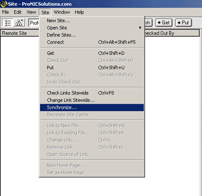 en "Site" y seleccione "Synchonize".El siguiente cuadro
